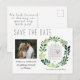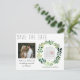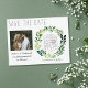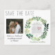 Lass Freunden und Verwandten, dass du mit diesen einfachen Aquarell Ankündigung Datum freihalten Postkarten heiraten wirst. Das Design zeichnet sich durch rustikale Typografie und einen handbemalten Wasserfarbenkranz aus grünem Blattwerk aus. Ein bezauberndes Bild des glücklichen Paares fügt eine besondere Touch hinzu, wie auch der personalisierte Kalender. Ideal für eine Hochzeit im Frühling oder Sommer.