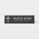Einfaches Weißkreuz mit Namen und Zitat aus schwar Schreibtischnamensplakette
