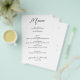 Ein hervorragendes Preis-Leistungs-Verhältnis, ein 5,5" x 8,5" weißes Dinner-Menü wird auf dünnen, 80 lb ungestrichenen matten Papier gedruckt und bietet Ihre Speisen in schicken Schriften. Ideal für einen modernen Hochzeitsempfang, ein Hochzeitsdinner, ein Jubiläum-Party oder eine besondere Veranstaltung mit einem Sit-down-Dinner. MEHR DESIGNS und Farben in unserem Geschäft. Der Live Design Service hilft Ihnen bei der Gestaltung Ihres Designs, den Schriftart oder bei der Farbanpassung.