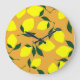 Einfaches Zitronenmuster, orangefarbener Hintergru Große Wanduhr
