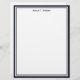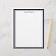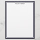 Ein einfaches und elegantes Briefkopfdesign mit einem dunkelblauen und weißen Rahmen, einem weißen Hintergrund und einem schwarzen Druck für Ihren Namen. (Der schwarze Ausdruck für Ihren Namen kann leicht an eine Farbe Ihrer Wahl angepasst werden.) Dieses Design wird in verschiedenen Rahmenfarben und auch in der Schreibwaren-Industrie angeboten.