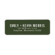Diese minimalistischen Rücksendeadressen-Aufkleber sind so konzipiert, dass sie unsere Einladungs-Kollektion "Simplicity" ergänzen. Sie zeichnen sich durch ihren Namen und ihre Rücksendeadresse in einem modernen Skript auf einem soliden, holzmoosgrünen Hintergrund aus.