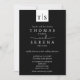 Ein modernes klassisches Schwarz-Weiß-Design, poliert, das ein Gefühl von Zeitlosigkeit und Eleganz ausstrahlt. Fügen Sie die URL Ihrer Hochzeitswebsite auf der Rückseite der Karte hinzu, die den QR-Code aktualisieren wird (oder löschen, wenn nicht erforderlich). Sie können den QR-Code einfach scannen, um auf eine Fülle von Informationen über alle Ihre Hochzeitsdetails und Updates usw. zuzugreifen. Eine bequeme, preisgünstige Einladung, ohne separate UAWG hinzuzufügen. Klicken Sie auf Personalisieren/Anpassen, um weitere Bearbeitungen durchzuführen.