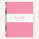 Dieses Notizbuch in Rosa und Weiß weist eine elegante Schreibweise eines Namens auf, die Sie personalisieren können.