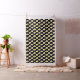 Eine einfache Vektorgrafik eines frittierten Eis in Gelb und Weiß auf Schwarz. Ein lustiges Polka-Punktmuster.