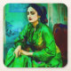 Ein von der KI generiertes Portrait einer introspektiven Frau in einem grünen Kleid