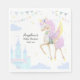 Babyduschpapier Napkin mit einem bezaubernden Einhorn mit Flügeln, Bundting und einem Schloss.