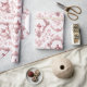 Elegantes klassisches, rosa und weiße Blumenmuster mit Windmühle und Segelbootsvignetten in verzierten Medallions aus Rokoko mit Garnelen aus Rose und wirbelnden Weinreben. Das Muster ist nahtlos und kann nach oben oder unten skaliert werden.