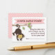 Ein lustiges Spiel für Sie, in die Einladung für die Babydusche aufzunehmen, in der die Gäste zu einer Tombola eingeladen werden, wenn sie zusammen mit ihnen ein Paket Windeln zur Babydusche mitbringen. Niedliche kleine Affenmädchen hängen spielerisch von einem blühenden Ast. Pastellfarben Baby Pink und Weiß koordinieren sich auch mit fast jeder Duscheinladung für kleine Mädchen.