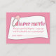 Ein lustiges Spiel für Sie, in die Einladung für die Babydusche aufzunehmen, in der die Gäste zu einer Tombola eingeladen werden, wenn sie zusammen mit ihnen ein Paket Windeln zur Babydusche mitbringen. Ein niedliches, leicht rosa Button und eine lustige Schrift in den Farbmustern von Rosa - ein Farbschema und Design, das sich mit fast jeder kleinen Duscheinladung abstimmen wird.