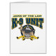 Deutscher Schäferspolizeihund hebt diese T - Shirts und -geschenke der Polizei K-9 Hundehervor! Kiefer des Gesetzestextes mit Einheit K-9, Polizei-Abzeichen und Gesetzdurchführungsfahne! Große T - Shirts K-9 und Geschenke K-9!