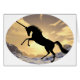 Ein fantastisches Einhornsilhouette gegen den Sonnenuntergang
