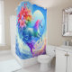Dieser Duschvorhang hat ein Einhorn darauf.