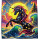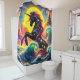 Dieser Duschvorhang hat ein buntes Einhorn darauf.