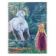 Spiralheft mit einer Fantasy-Illustration eines Einhorns, das durch den Wald läuft und auf ein junges Mädchen trifft. "Encounter in the Woods" Kunstwerk Copyright: Dominic A. White. Alle Rechte vorbehalten.