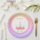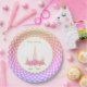 Einhorn, Blume, Goldfetti auf Pastellfarben Pappteller
