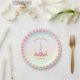 Einhorn, Blume, Herz und Goldpunkte Pappteller
