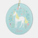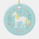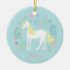 Einhorn-Blume Rosa Aqua Personalisiert Keramik Ornament