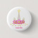 Einhorn, Blume und goldene Konfetti auf weiß Button. Name bereit, personalisiert zu sein.