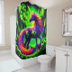 Dieser Duschvorhang hat ein hübsches Einhorn, das darauf abgebildet ist.