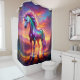 Dieser Duschvorhang hat ein Einhorn darauf.