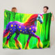 Diese Fleecedecke hat ein künstlerisches Einhorn, das darauf abgebildet ist.