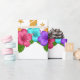 Einzigartiger Unicornentwurf mit hübschem Goldhorn, Sternen, den Ohren und den hübschen rosa, lila und aquamarinen Blumen.