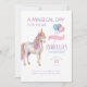 Feiern Sie einen magischen Geburtstag mit dieser entzückenden Einhorn-Einladung! Mit einem wunderschön illustrierten Wasserfarben-Einhorn mit einer fließenden pastellfarbenen Regenbogenmähne und einem glänzenden goldenen Horn schafft dieses Design den perfekten märchenhaften Look für eine Einhorn-Geburtstagsfeier der Mädchen.