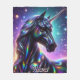 ein lebendiges und mystisches Einhorn mit leuchtendem Horn und farbenfrohen Haaren inmitten eines zauberhaften und glitzernden Hintergrunds
