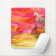 Brillant farbene, leicht abstrakte Aussicht auf die Malerische Wüste mit diesem majestätischen Einhorn, das auf einem Felsen stehend ist und den Blick auf Sunset überragt.