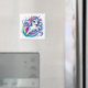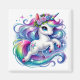 Dieser quadratische Magnet wird mit einem süßen magischen Einhorn-Kunststoffdruck gezeigt.