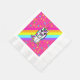 Hübscher Regenbogen vereint lila, rosafarbene, limiengrüne, orangefarbene Sprinklen Geburtstagsnapkins von Mädchen.