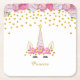 Einhorn mit rosafarbenen Blume und goldmetallic Look Konfetti auf weißem Square Paper Untersetzer. Niedliche elegante Untersetzer!