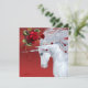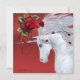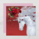 Ein schönes, weißes Einhorn ist mit roten Bändern und Rose geschmückt.