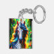 Dieser Schlüsselanhänger hat ein Einhorn, das darauf abgebildet ist.