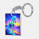 Dieser Schlüsselanhänger hat ein Einhorn, das darauf abgebildet ist.