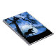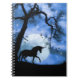 Einhorn- und Mondheft. Große Blues auf diesem sehr coolen Bild. Ein Eichenbaum umrahmt das Einhorn mit Vögeln, die vorbeifliegen. Ein lustiger Weg zurück in die Schule!