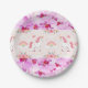 Unicorns & Orchids Papier Teller mit verträumten, niedlichen Fantasie Unicorn Traumland gefüllt mit Blume, Regenbögen und Wolken in pastellfarbenen Aquarell Set. In einzigartigen Lavendel / rosa Orchideen platziert. Schöne, schicke Party-Teller, die sich herausstellen werden.