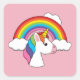 Einhorn und Regenbogen mit Wolken Kawaii Quadratischer Aufkleber