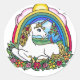 Ein Einhorn begrüßt den Bluebird of Happiness über den Regenbogen in einem strahlenden Land der Ruhe und des Überflusses.