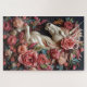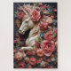 Jigsaw Puzzle mit einer fabelhaften romantischen Fantasy-Illustration eines Einhorns mit Rose. Dieses Puzzle-Puzzle wäre ein wunderbares Geschenk für jeden Rätselliebhaber, der Einhörner oder Stickereien mag.
