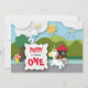 Eine zauberhafte, farbenfrohe Landschaft mit einem einsamen und sonnigen Ambiente, um Ihre Gäste zum ersten Geburtstag Ihres kleinen Hauses einzuladen.