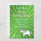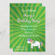 Einladung zum Geburtstag mit Einhorn und grünem Sonnenburstmuster