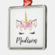 Einhorngesicht mit Eyelashes Personalisierte Bezeichnung Metal Ornament