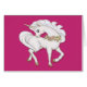 Genießen Sie den Zauber mit diesem hübschen weißen Einhorn, goldenen Akzenten und blumigen Kranz um ihren Hals. Tief rosa Hintergrund.