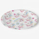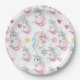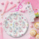 Das Design zeichnet sich durch ein nahtloses Muster aus eleganten Einhornköpfen mit pastellfarbenen, gewellten, in Rosa, Blau und Gelb gehaltenen Manen aus, die mit Glitzern geschmückt sind. Die Einhörner haben ausdrucksstarke Augen und goldene Hörner, die ihnen ein magisches Aussehen verleihen. Die Farbpalette umfasst rosa Herzen und zarte Blume in Gelb-, Rosa- und Blautönen. Der Hintergrund ist weiß, sodass die lebendigen Elemente sich herausstellen und eine skurrile und verträumte Ästhetik erzeugen.