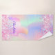 Ein trendiger, regenbogenfarbener Hintergrund mit Einhorn- und Regenbogenpastellfarben in Rosa, lila, Minzgrün. Dekoriert mit Konfetti und einem Regenbogenfarben Einhorn. Personalisieren und fügen Sie einen Namen, geschrieben mit einem modernen handgeschriebenen Stil Skript.
