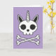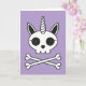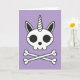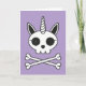 Dieses grafische Kunstwerk verbindet das whimsical und das makabre, mit einem stilisierten Schädel mit großen, ausdrucksstarken Augen, einem Einhorn und katzenartigen Ohren. Wie man an Sophie's T - Shirt sieht, wird der Schädel von Kreuzknochen begleitet, was seine spielerische, aber gotische Anziehungskraft verstärkt. Das Design verwendet ein einfaches Schwarz-Weiß-Farbschema, das den Fettdruck und die grafische Beschaffenheit der Illustration betont. Diese einzigartige Mischung macht es zu einer perfekten Wahl für alle, die eine Mischung aus Fantasie, dunklem Spaß und minimalistischer Kunst schätzen.
