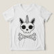 Dieses grafische Kunstwerk verbindet das whimsical und das makabre, mit einem stilisierten Schädel mit großen, ausdrucksstarken Augen, einem Einhorn und katzenartigen Ohren. Wie man an Sophie's T - Shirt sieht, wird der Schädel von Kreuzknochen begleitet, was seine spielerische, aber gotische Anziehungskraft verstärkt. Das Design verwendet ein einfaches Schwarz-Weiß-Farbschema, das den Fettdruck und die grafische Beschaffenheit der Illustration betont. Diese einzigartige Mischung macht es zu einer perfekten Wahl für alle, die eine Mischung aus Fantasie, dunklem Spaß und minimalistischer Kunst schätzen.