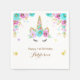 Diese Blumenservietten sind personalisiert! Du kannst deinen Namen und das Alter deiner Kinder hinzufügen! Auf diesen Servietten gibt es Aquarellfarben mit einem Einhorngesicht und Sternen.